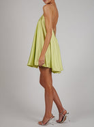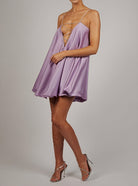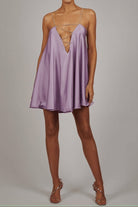 Denne korte, flydende kjole fremhæver silhuetten med elegance og lethed. Dens fine stropper prydet med smykker tilføjer et lyst og forfinet touch. Ideel til aftener eller særlige anledninger, hvor hver detalje tæller.