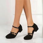 Diese geschlossenen Schuhe mit breitem Absatz und verstellbarem Riemen kombinieren Raffinesse und Komfort im Alltag. Ihr schickes Design hebt jedes Outfit hervor, während die gepolsterte Sohle ein dauerhaftes Wohlgefühl garantiert.