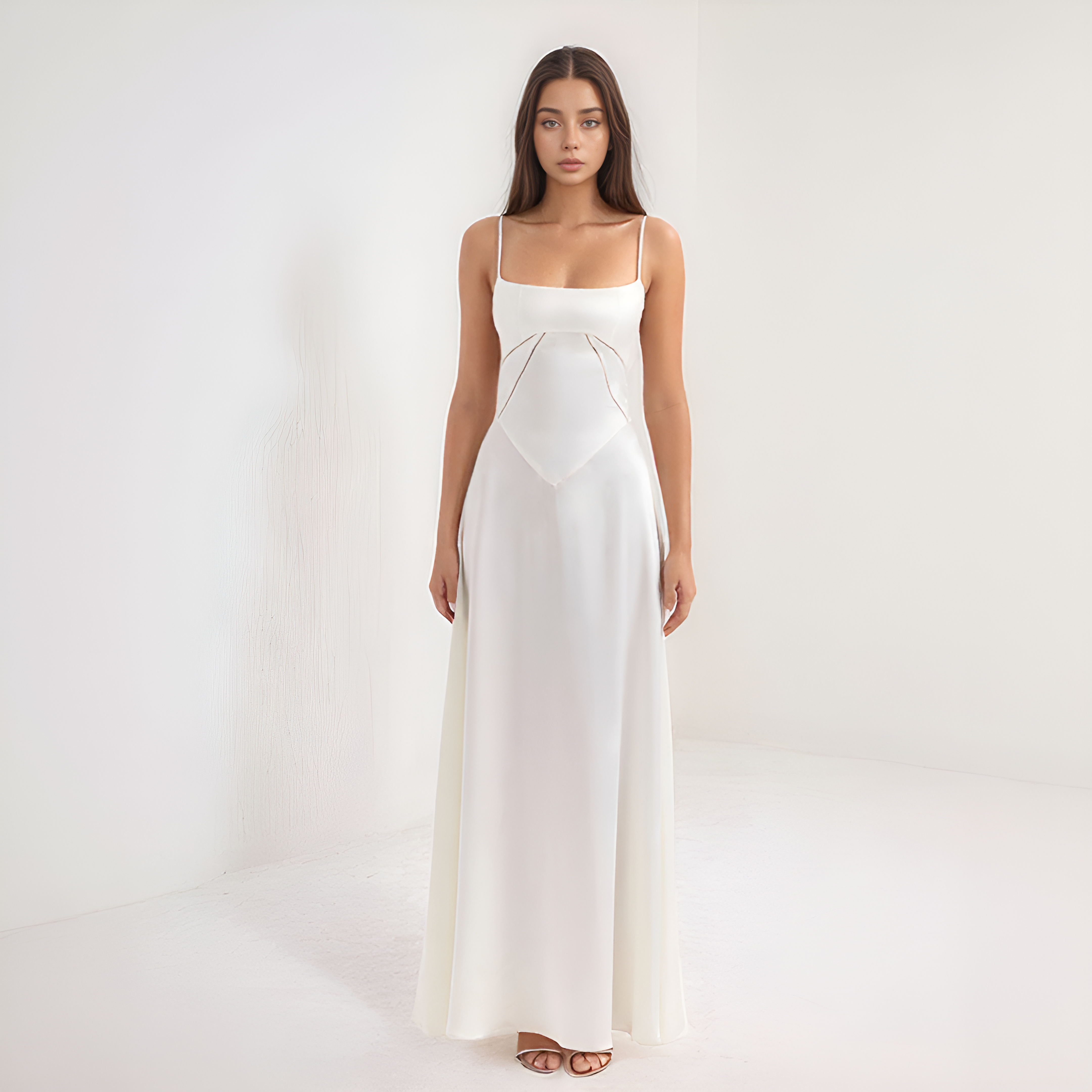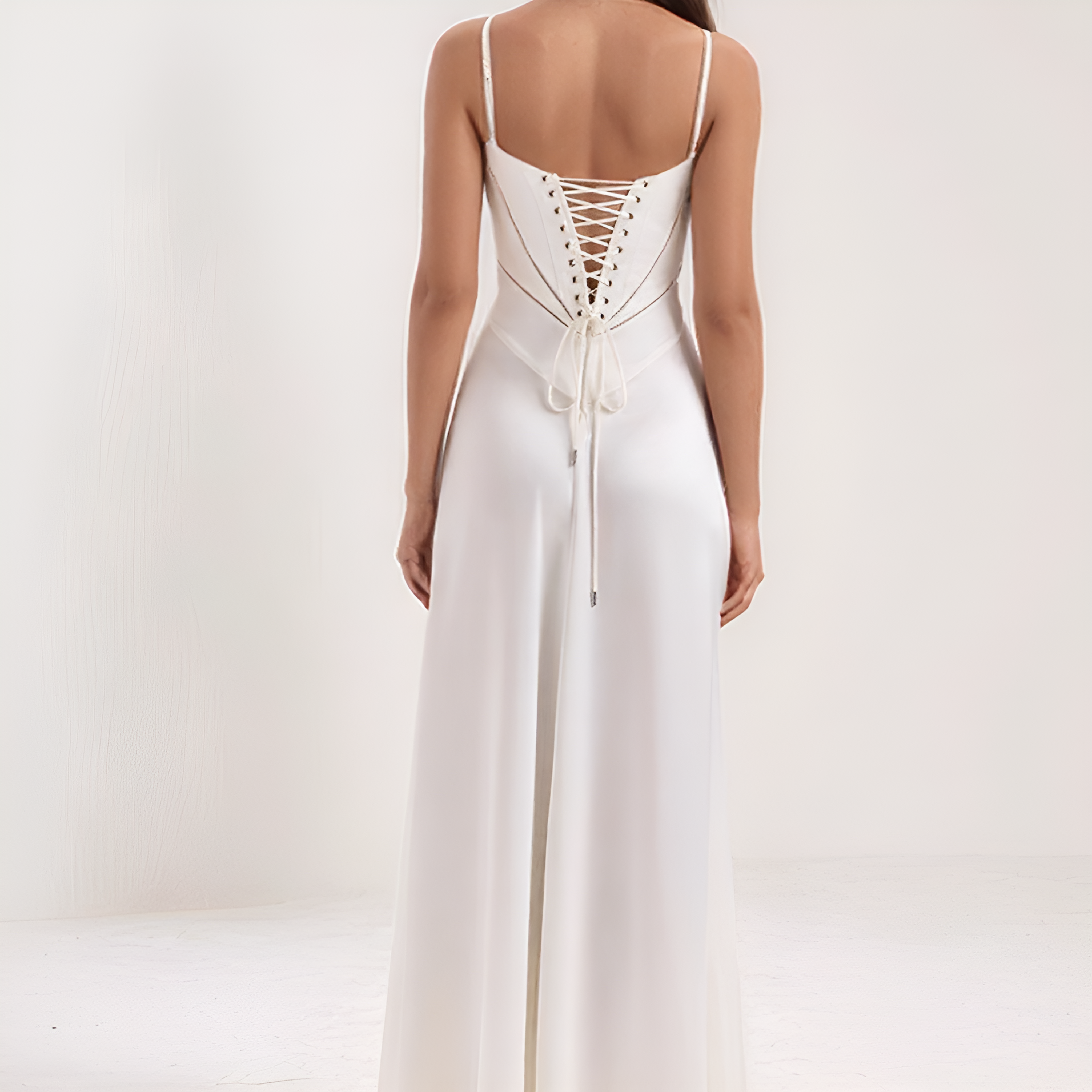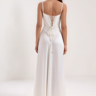 Αυτό το μακρύ φόρεμα αναδεικνύει τη σιλουέτα χάρη στο μπούστο του σε στυλ κορσέ που τονίζει διακριτικά τη μέση. Η ρευστή του γραμμή προσφέρει κίνηση και χάρη, ενώ η πλάτη με κορσέ προσθέτει μια ρομαντική και δομημένη πινελιά. Ιδανικό για βραδιές, γκαλά ή τελετές.