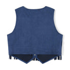 Cette veste sans manches présente des franges élégantes et des détails de boutons raffinés. Son design intemporel s'adapte à diverses occasions. Parfaite pour superposer sur vos tenues préférées.