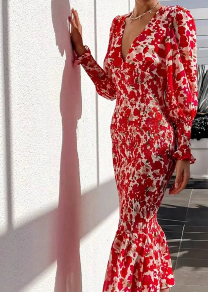 אנדרה | שמלת מקסי בוהמית שיק – אלגנטיות אדומה ורוח רומנטית