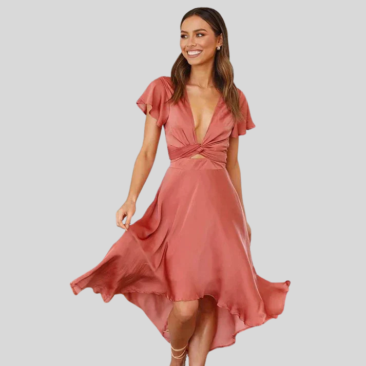 Louise | Abito Lungo Elegante con Volant e Scollatura Profonda