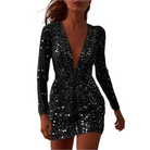 このきらめくドレスは、フィット感のある洗練されたカットでシルエットを引き立てます。光るスパンコールのディテールは微妙な輝きを与え、夜のイベントやエレガントな場面で注目を集めるのに最適です。