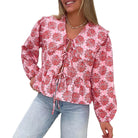 Denne blusen har en feminin silhuett og et sjarmerende blomsterdesign. Dens langermede design og unike krage gir et preg av eleganse. Perfekt for uformelle anledninger, den kombinerer stil og komfort.