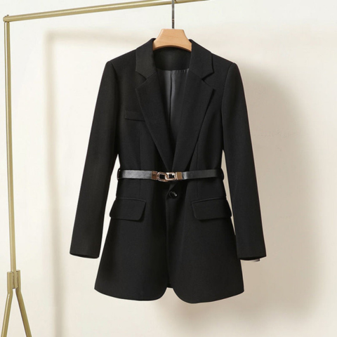 Janine | Długi żakiet z paskiem dla kobiet — Nowoczesna elegancja i codzienna finezja