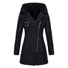 This mid-length coat combines elegance and practicality for the cold season. Its structured cut slims the silhouette while providing optimal comfort thanks to its warm lining and protective hood. The zip details and crafted inserts give it a modern and sophisticated touch, ideal for an urban and refined look.