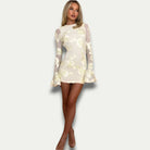 Această rochie midi seduce prin broderia florală delicată și mânecile lungi ușor transparente. Spatele gol adaugă o notă de senzualitate discretă, perfectă pentru ocazii speciale. Disponibilă în mai multe culori, se adaptează tuturor dorințelor voastre cu eleganță.